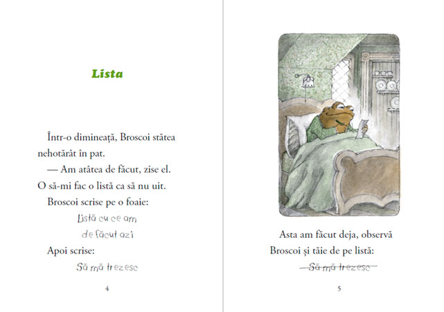 — Cei din această carte au curaj, spuse Broscoi. Se luptă cu balauri și cu uriași și nu se tem niciodată.