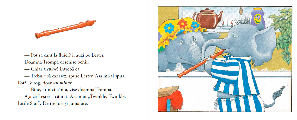 Doamna Trompă vrea câteva minute de răgaz. Singură. Baia e pregătită, fierbinte și cu multă spumă. Alături, o ceașcă de ceai, pâine prăjită și gem. Cine poate rezista unui asemenea răsfăț?