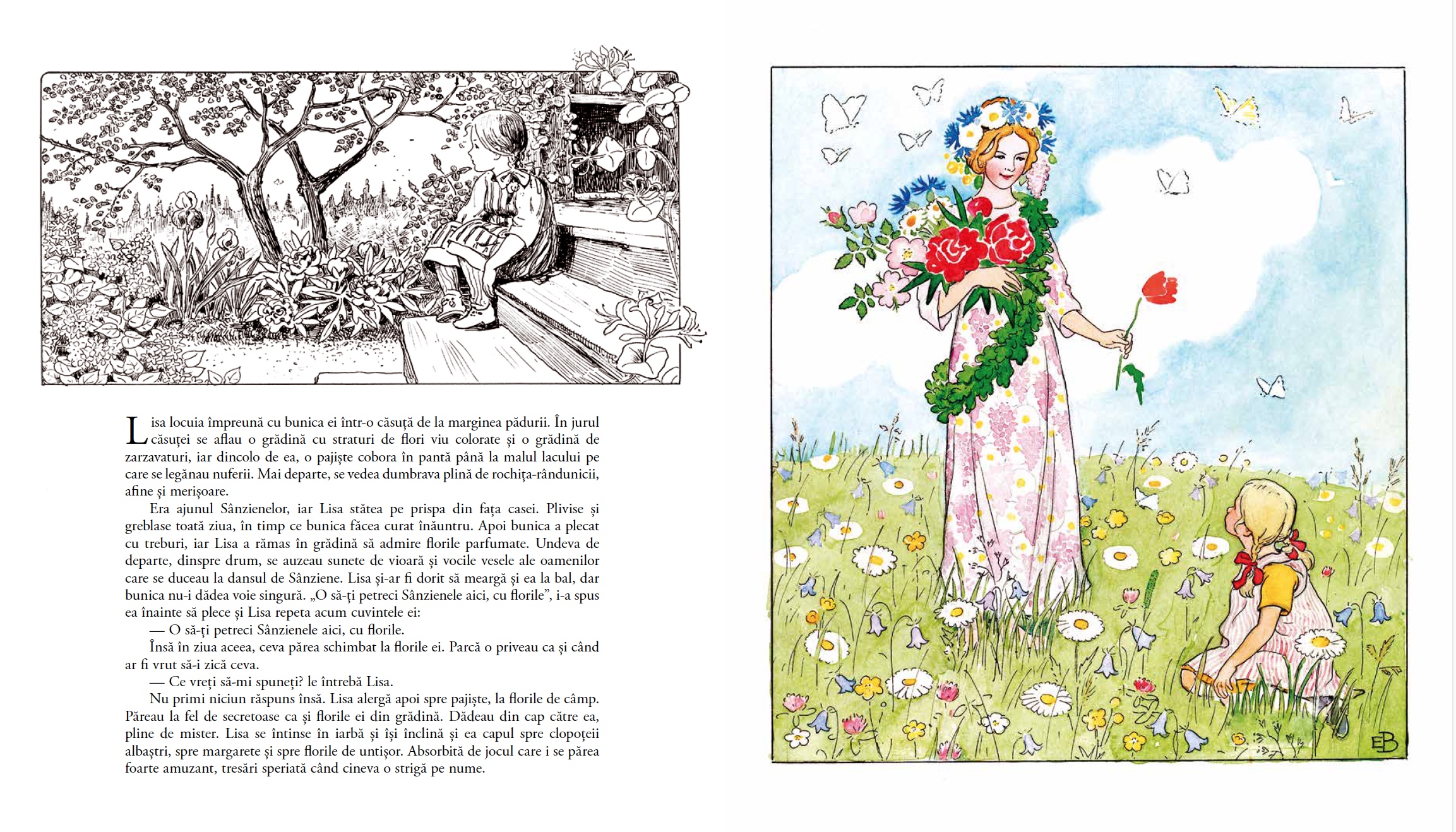 Știați că în fiecare an în noaptea de Sânziene, florile se întâlnesc în secret și sărbătoresc solstițiul de vară într-un Festival al florilor? Doar în această noapte micuțele plante pot merge la fel ca oamenii, dar nu pot fi văzute. Iar dacă Zâna Sânzienelor îți va picura un strop de lapte de mac pe pleoape, vei deveni invizibil. Astfel, vei putea merge la petrecerea lor, vei putea să le vezi și să le asculți poveștile. Nu-i așa că ți-ar plăcea să fii și tu acolo?
